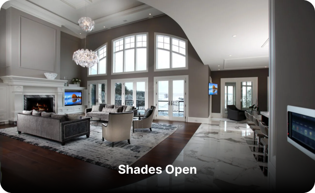 Press a single button to dim all the lights and lower the shades at night when you are unwinding from your day. Or press another button on Saturday night to get ready for a dinner party. All the lights jump to action and create a scene ready to impress your guests.
