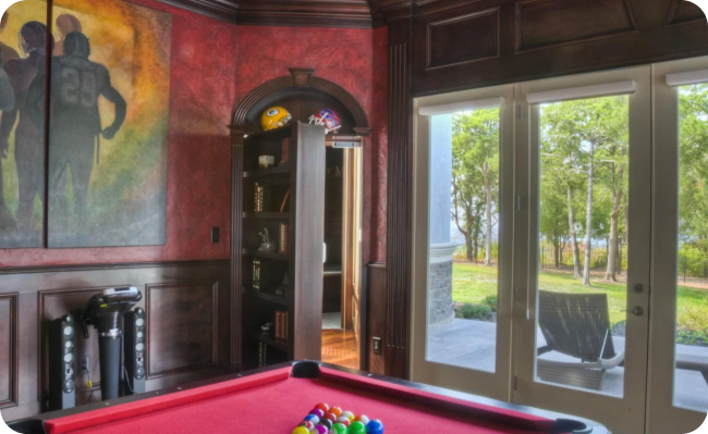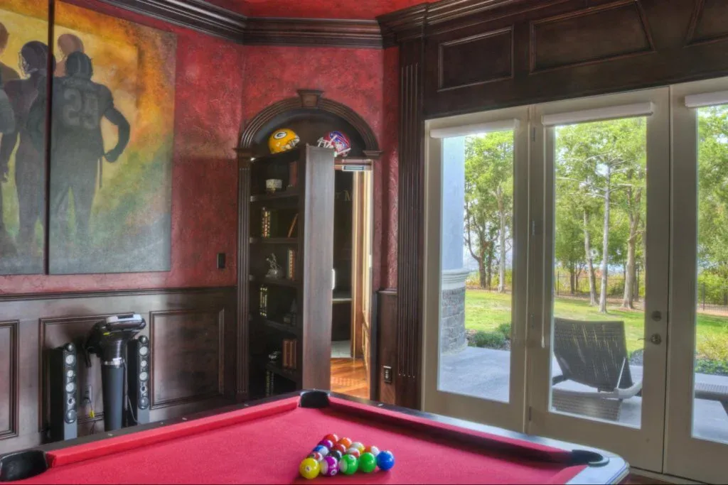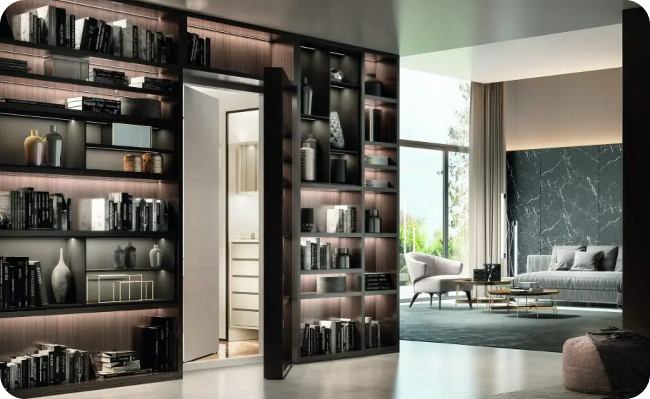 Panic rooms can be hidden behind many household features, such as mirrors, wardrobes, bookcases, sliding bookcases, and even fireplaces.